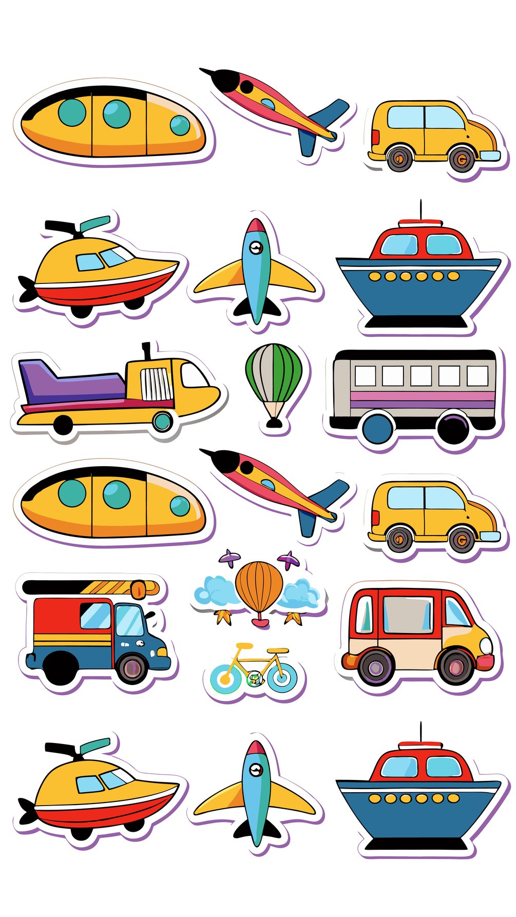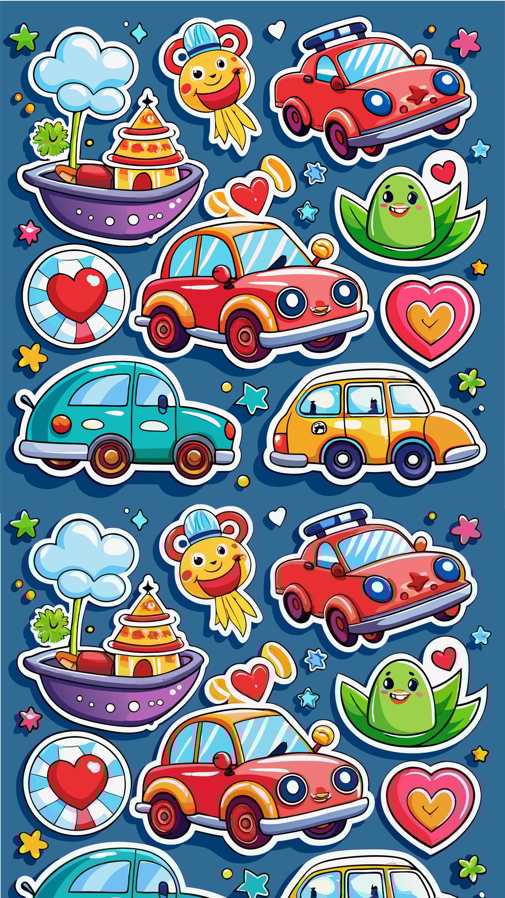 Vehicle Stickers: Various transportation-themed designs with unconventional styles, adding a touch of movement and innovation.
